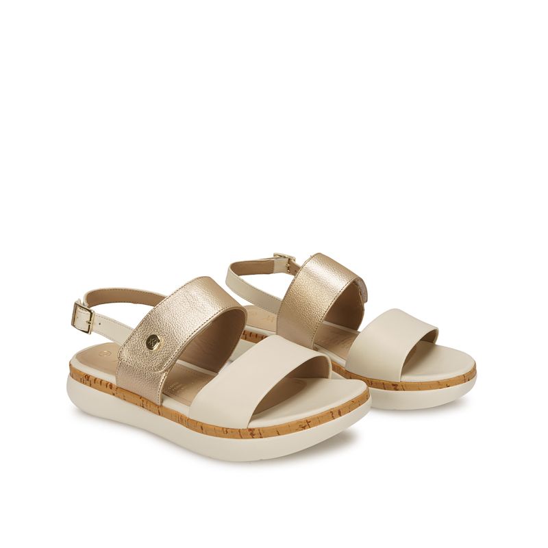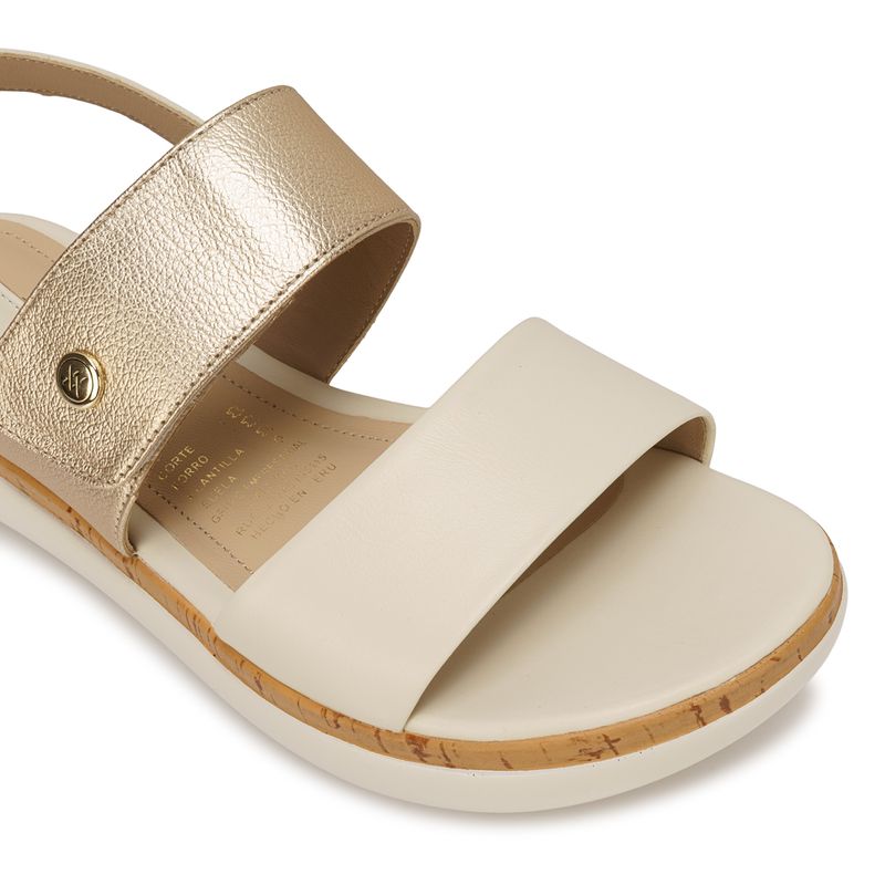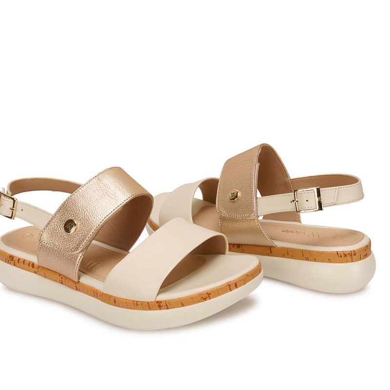 Sandalia D'orsay Casual ALE-2619 Hueso/Dorado Viale Cuero