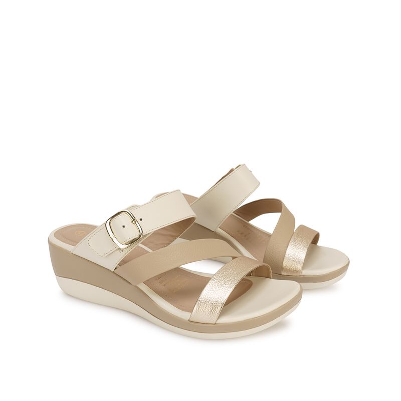 Sandalia Slide Casual ALE-2634 Hueso/Trigo Viale Cuero