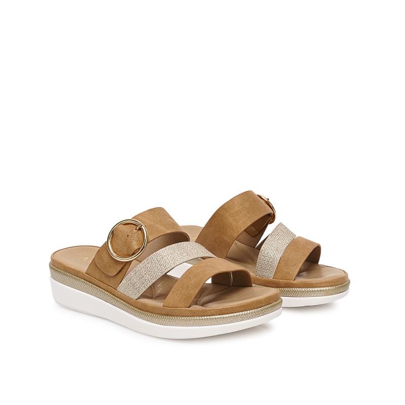 Sandalia Slide Casual ANA-2626 Mocca/Dorado ADV