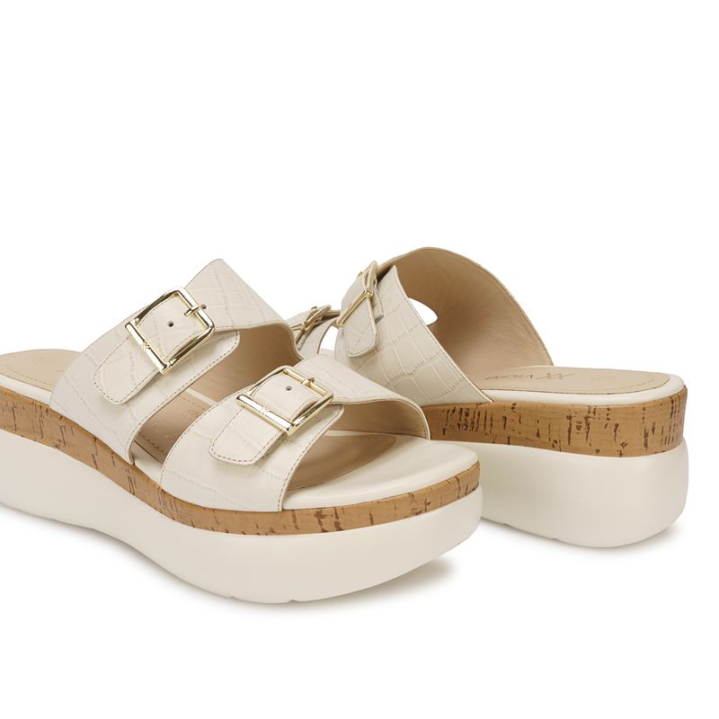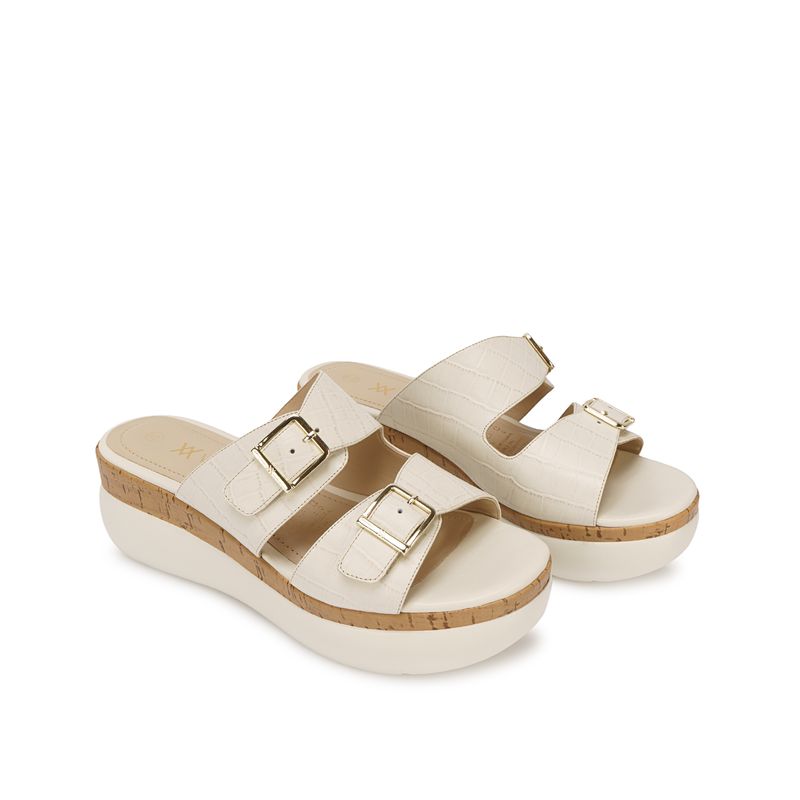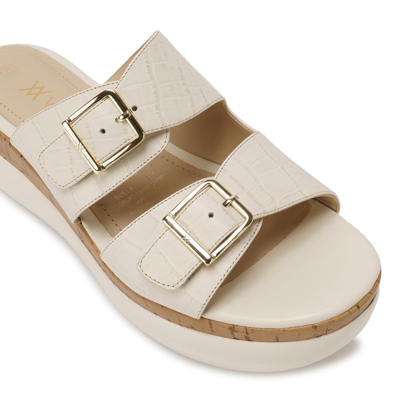 Sandalia Slide Casual DAYA-2601 Hueso Viale Cuero