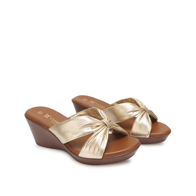 MujeresSandaliasTaco MedioSandalia Slide Casual ECO-2605 Dorado Viale Cuero