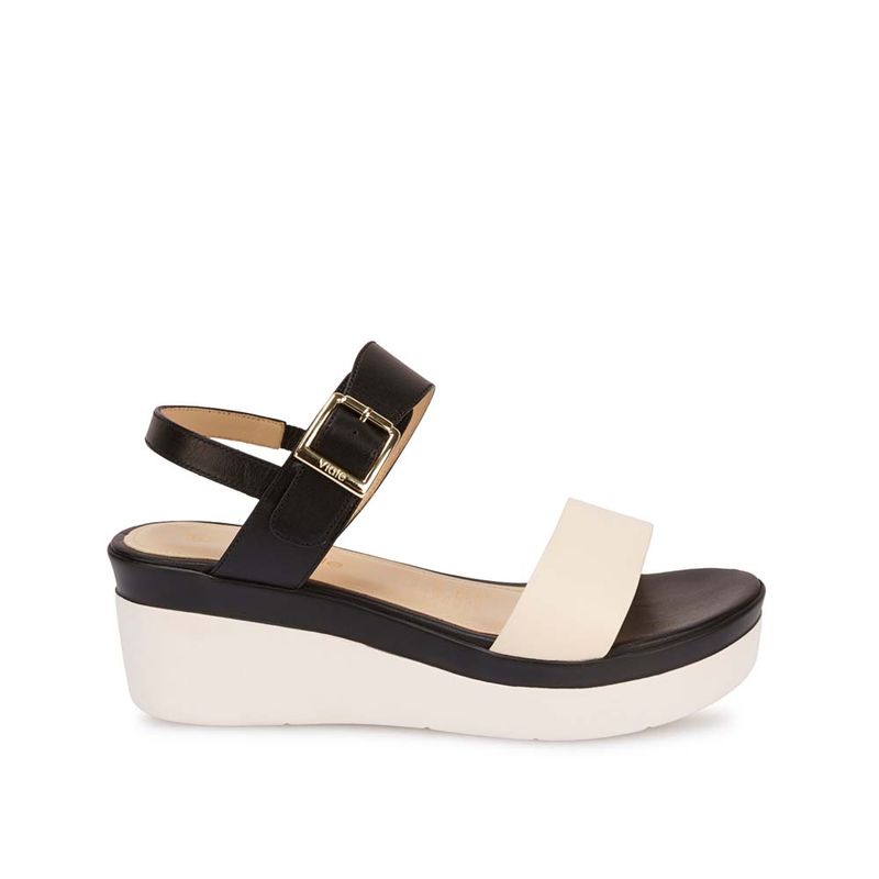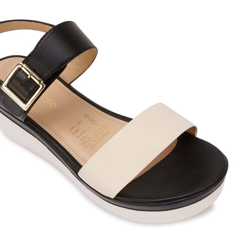 Sandalia Strap Casual ALE-2513 Hueso/Negro Viale Cuero