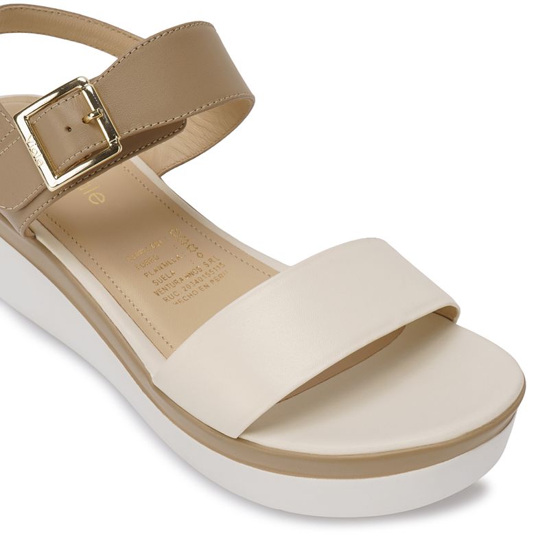 Sandalia Strap Casual ALE-2513 Hueso/Vison Viale Cuero