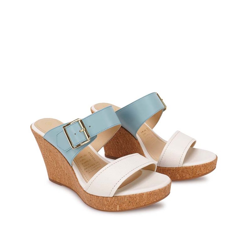 MujeresSandaliasTaco AltoSandalia Strap Casual ALE-2522B Blanco/Celeste Viale Cuero