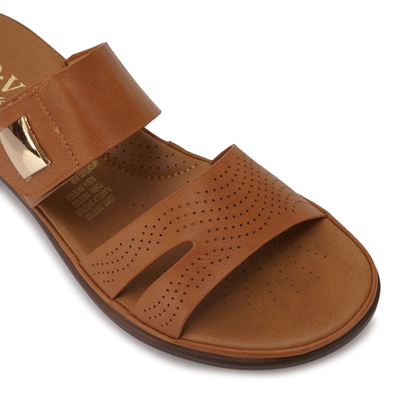 Una sandalia práctica y estilizada, diseñada para ofrecer comodidad y elegancia casual. Su tacón medio aporta altura y frescura, mientras que el diseño sin cierre la hace moderna y versátil.