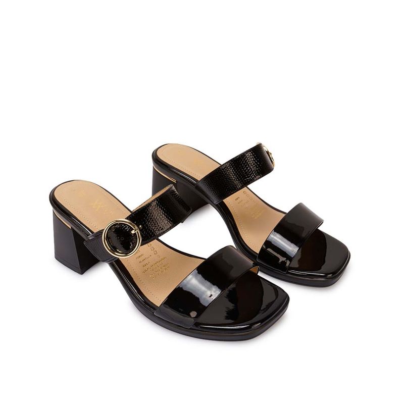 MujeresSandaliasTaco MedioSandalia Strap Casual LINDA-2607 Negro Viale Cuero