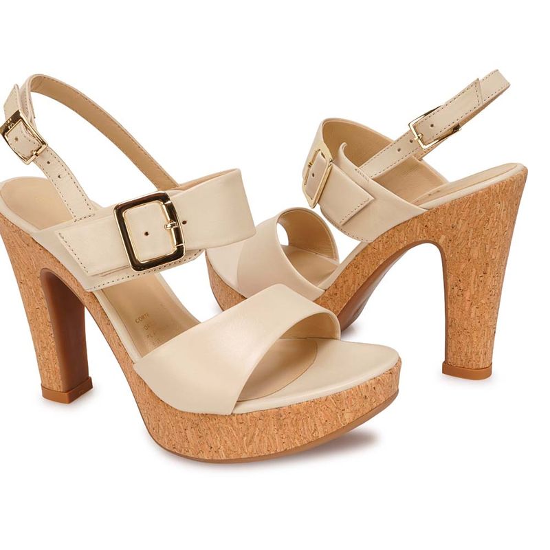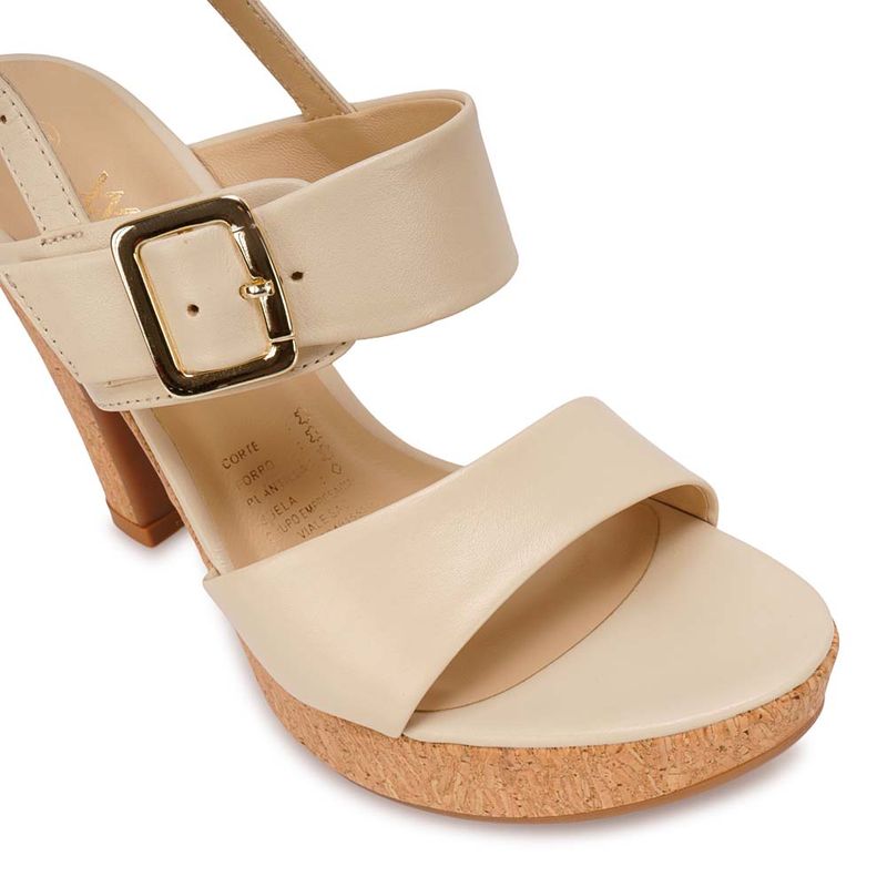 MujeresSandaliasTaco AltoSandalia Strap Casual TATI-2606 Vainilla Viale Cuero