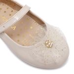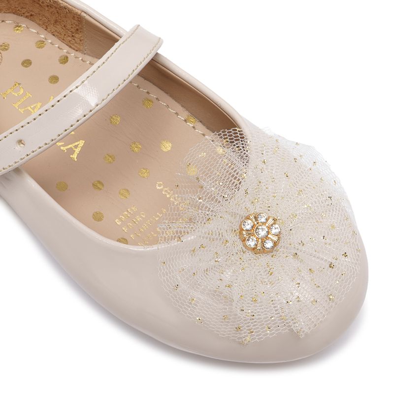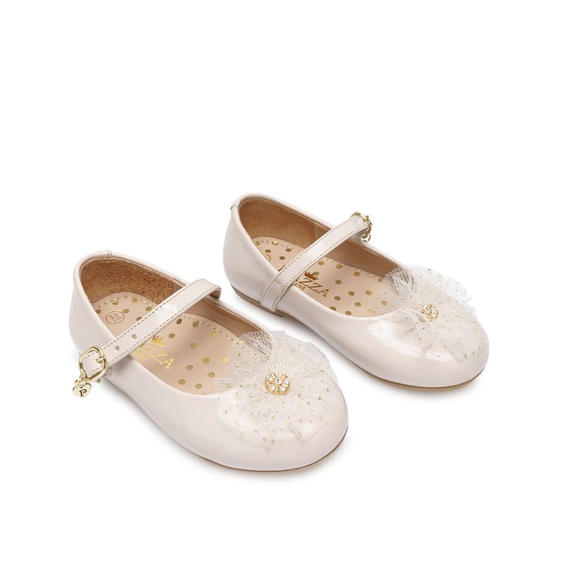 Un calzado tipo ballerina que une elegancia y comodidad para las más pequeñas en ocasiones especiales. Su diseño delicado y versátil se adapta a vestidos y conjuntos formales, convirtiéndose en el complemento ideal para cualquier evento.